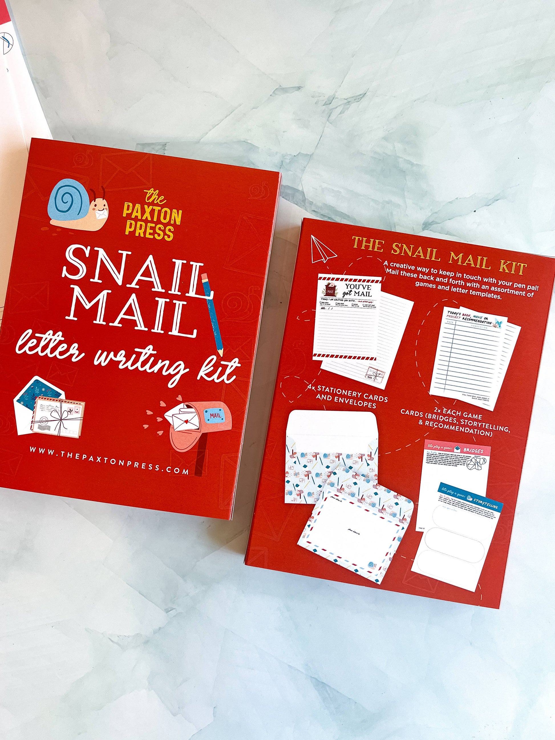 All 5x7 cards printed on premium 65lb cover stock 4qty: You’ve Got Mail Letterhead 4qty: Snail Print Mailing Envelopes 2 qty: Storytelling Game 2 qty: Bridges Game 2 qty: Book Recommendation Card