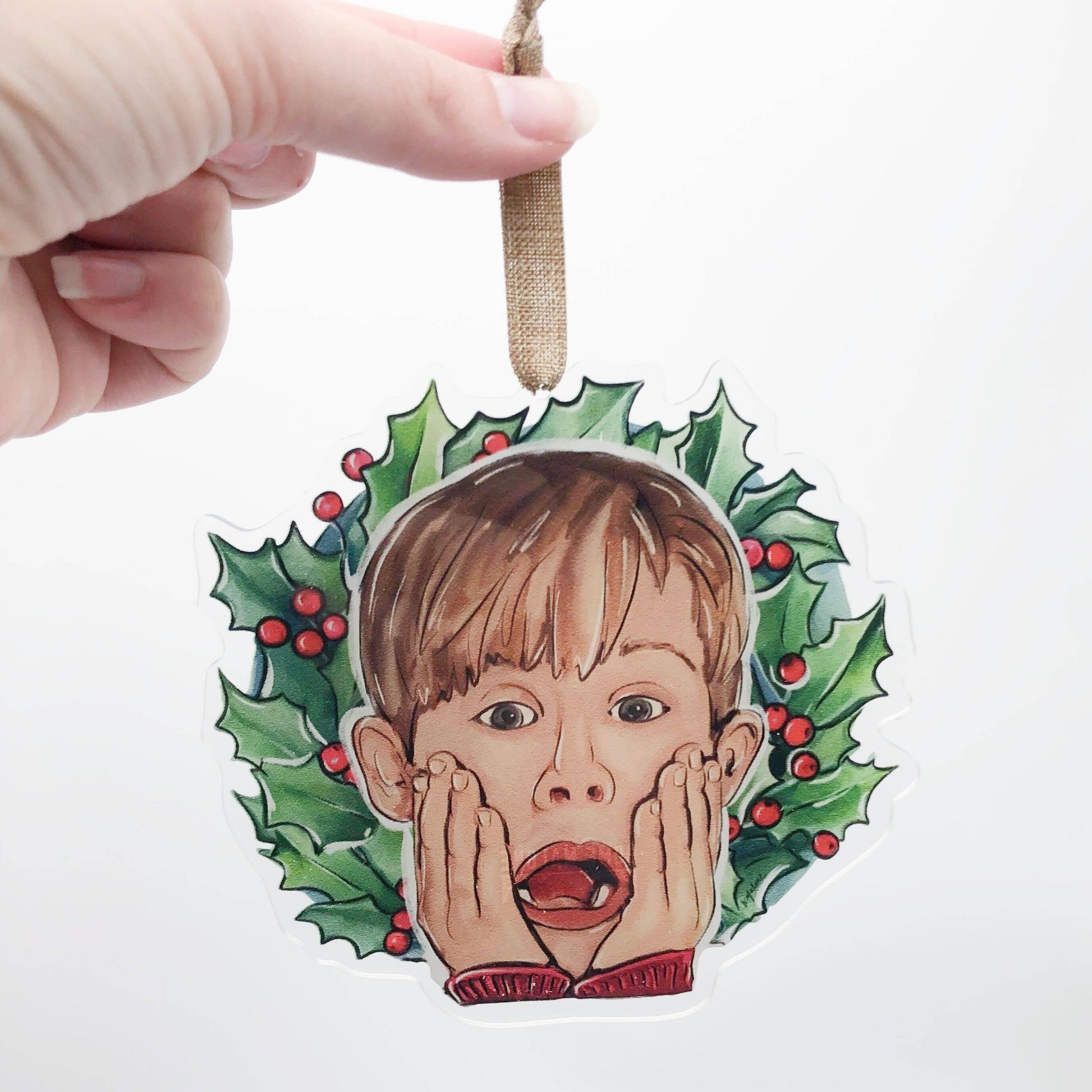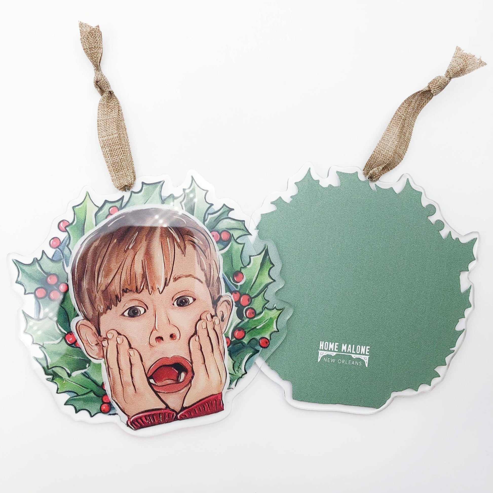 Bring home this delightful ornament from your favorite Christmas classic movie! Featuring Kevin's surprised face surrounded by a festive wreath this ornament is everything you need this holiday season.