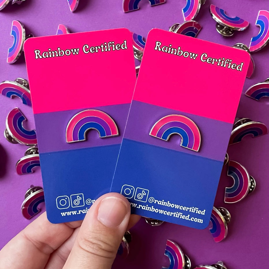 Representing the Bisexual PRIDE Flag with this cute rainbow pin ❤️ Each pin is 2.5cm and has a butterfly clip.