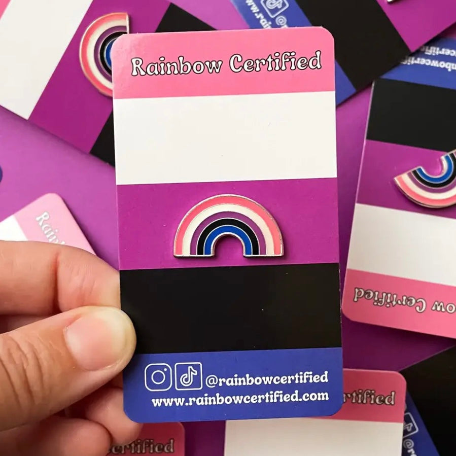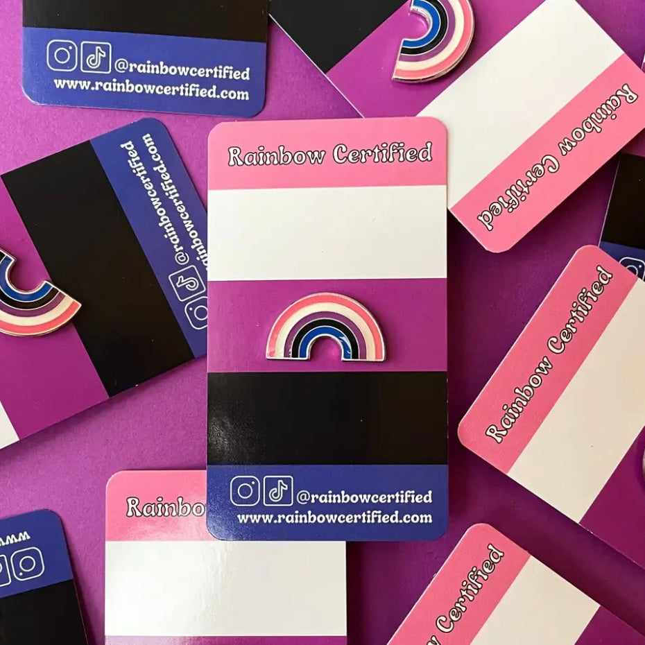 The Genderfluid pride flag now in a cute LGBTQ+ rainbow pin! Each pin is 2.5cm and comes with a butterfly backing.