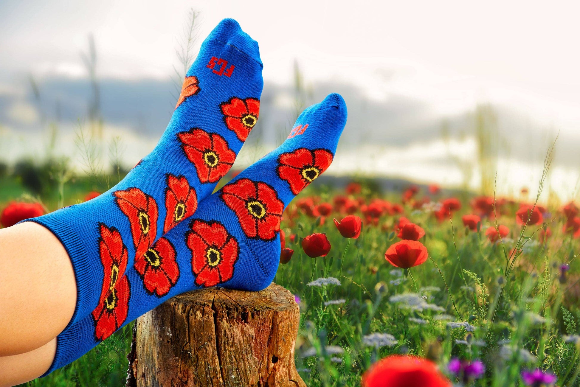 Our bestselling "Poppysock" is a visually stunning sock with universal appeal. Knit from soft, sustainably sourced cotton with exceptional breathability and cushioning.