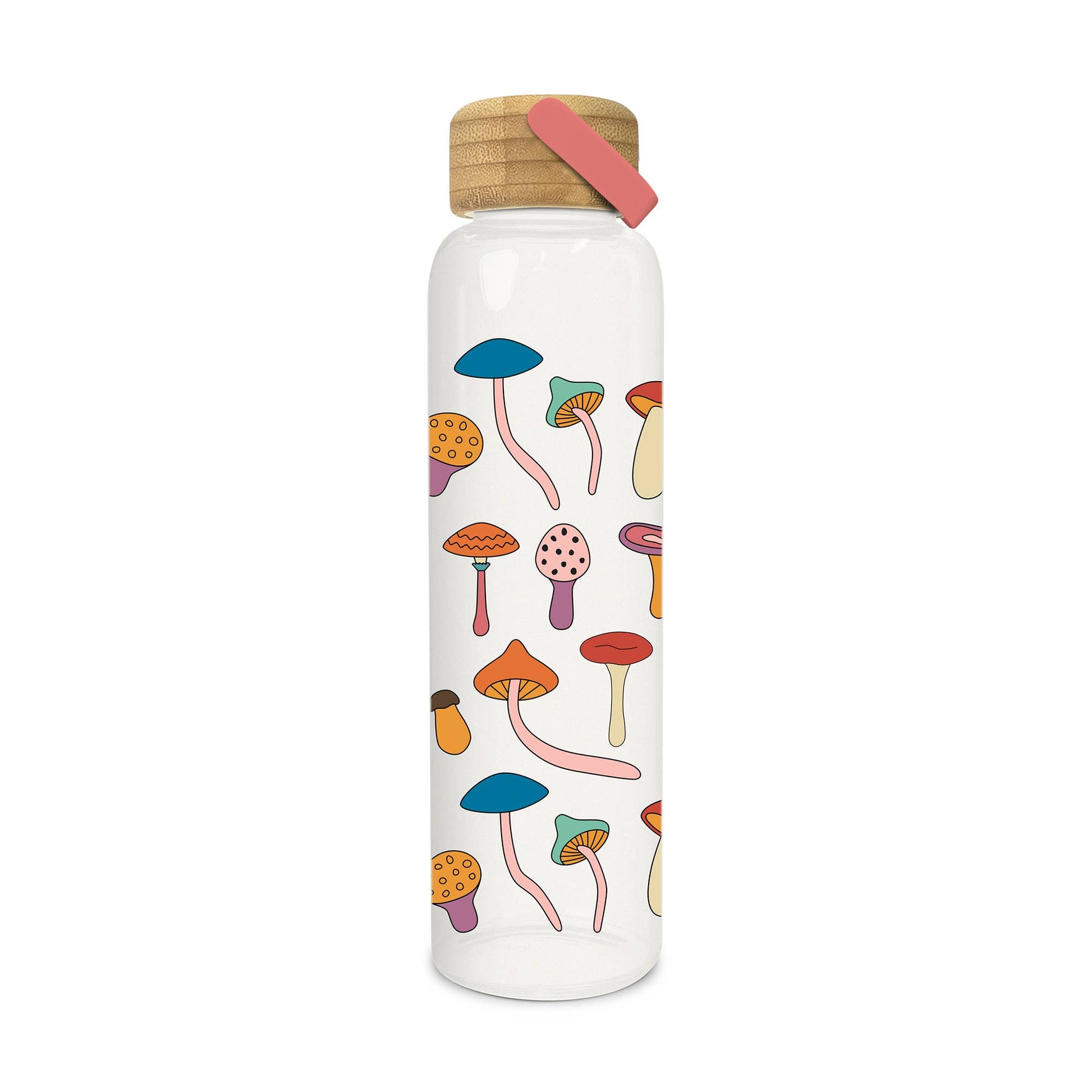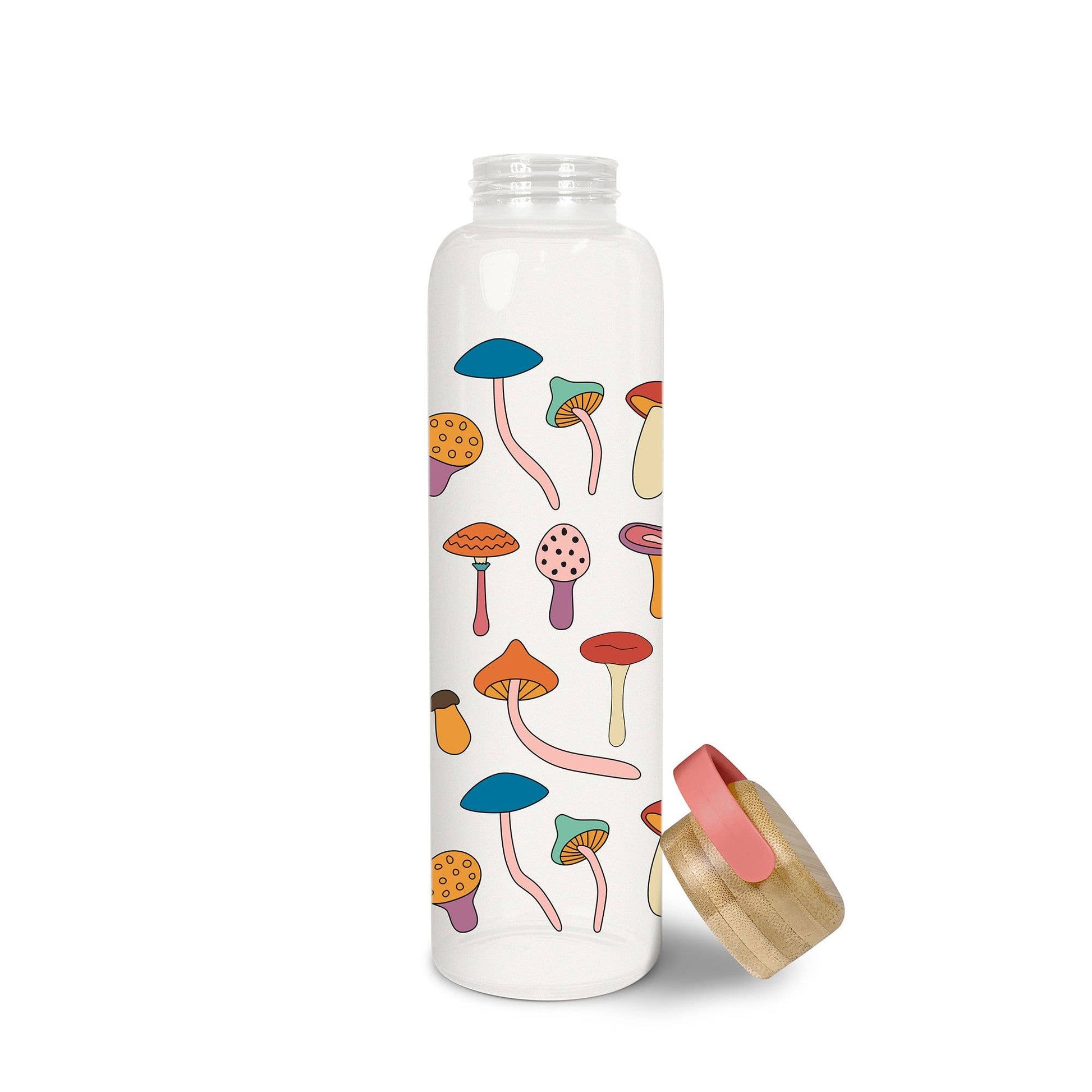 Mushroom Melody Glass Water Bottle with Bamboo Lid