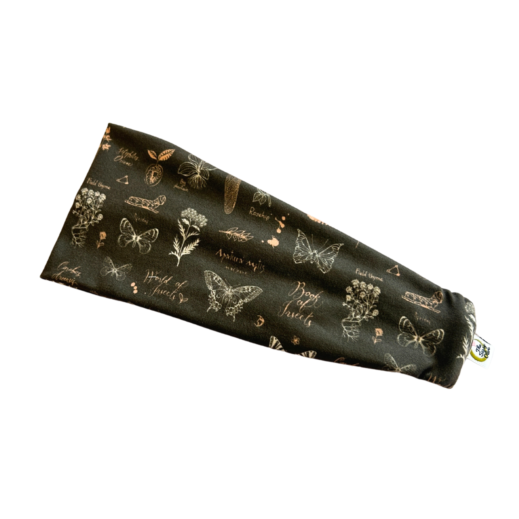 A dark sage background filled with forest finds—bugs, plants, and mushrooms—labeled in spooky-chic style. Woodland vibes, but make it edgy.