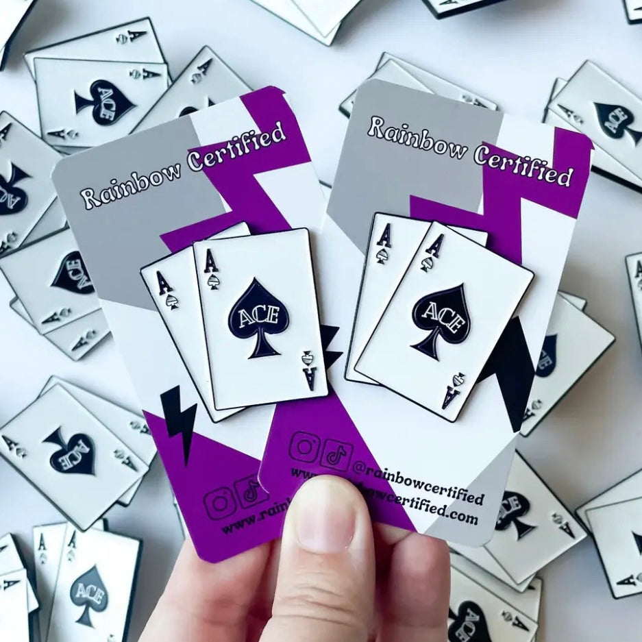 Here is a subtle way to show of your Asexual Pride! Use this pin to add some pride to your jackets, clothes, bags, lanyards and more! Each pin is 3.5cm x 3cm and comes with two butterfly backing clips