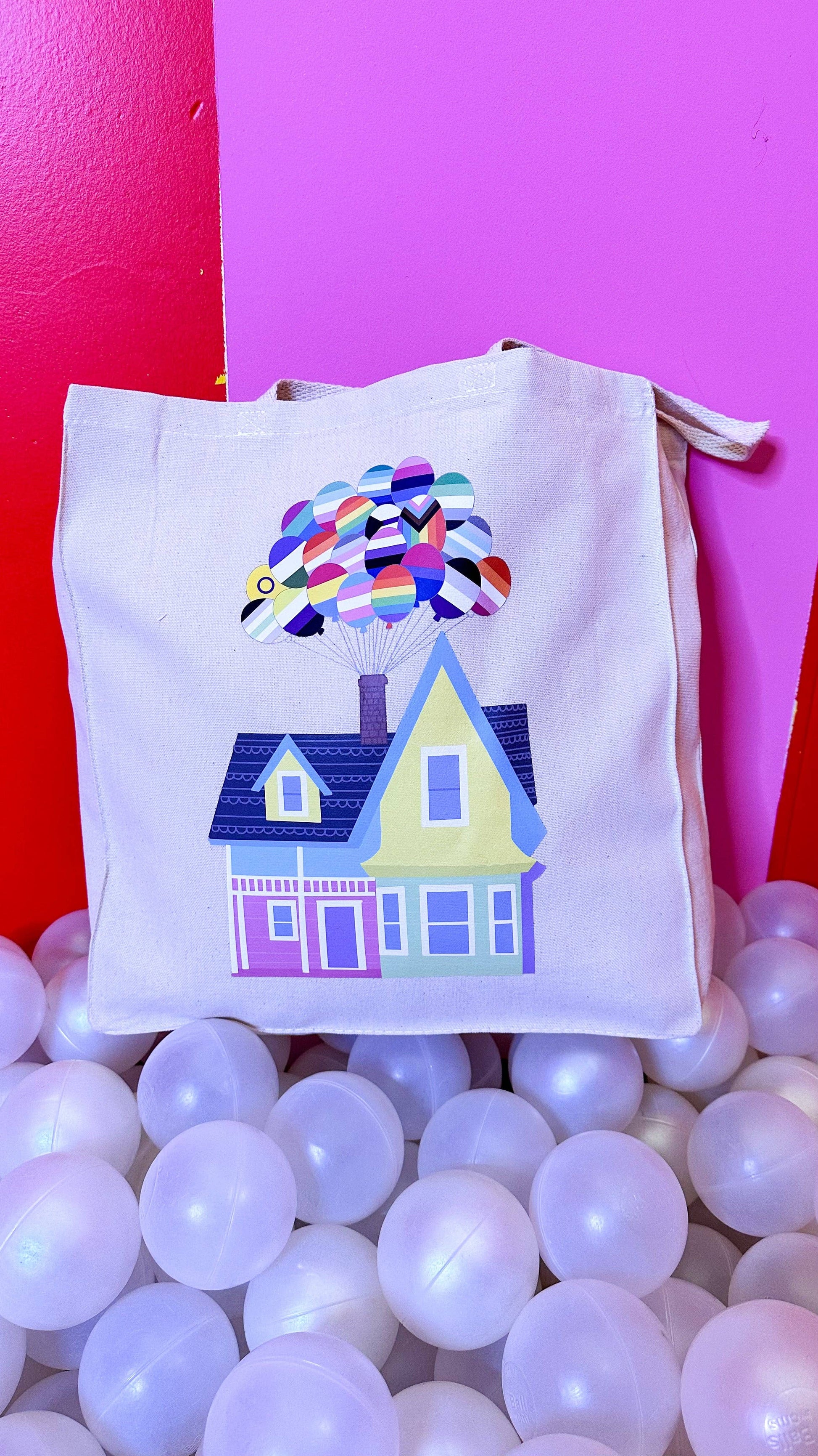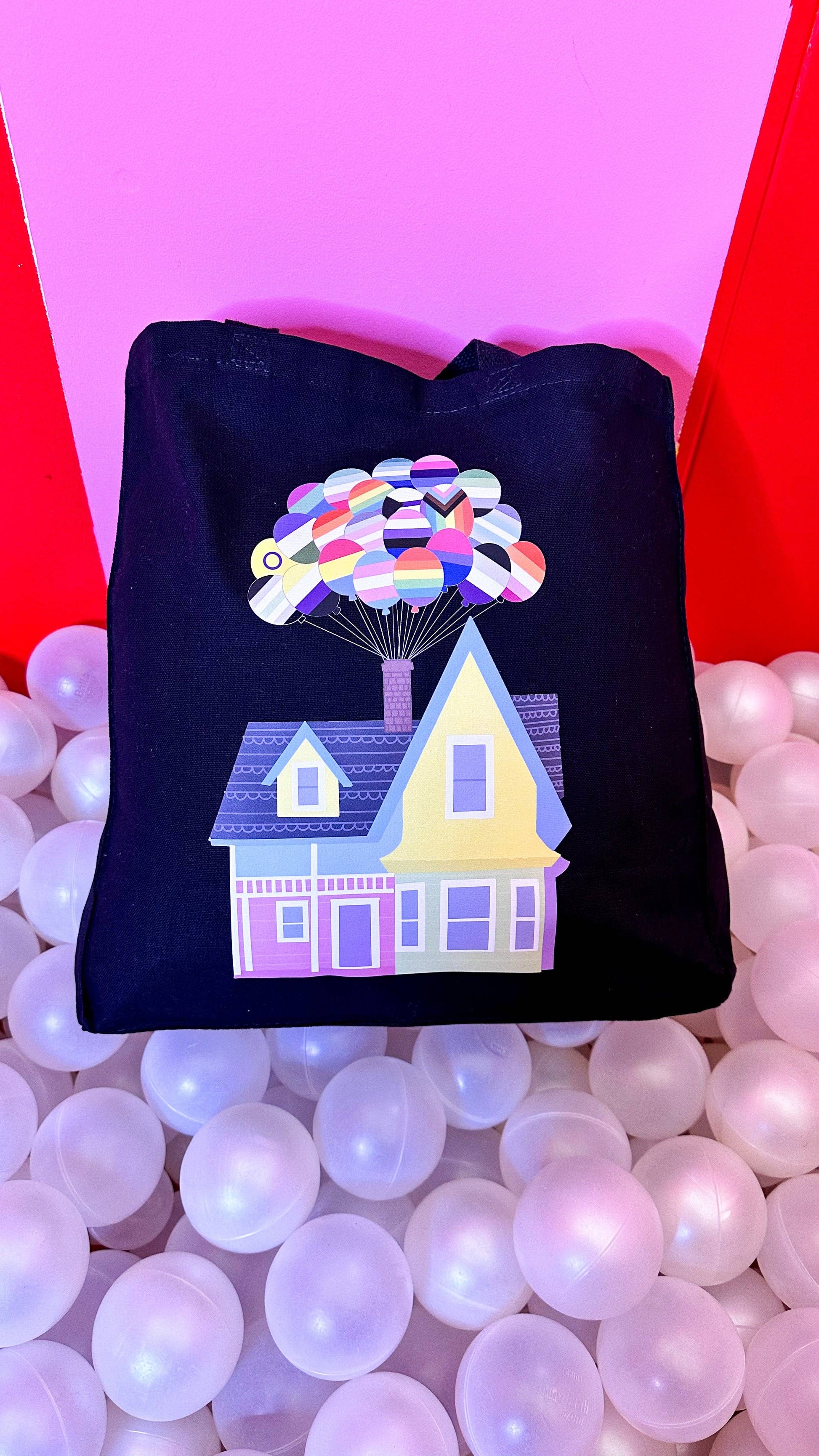 Celebrate your LGBTQ+ pride with our colourful balloon house and brighten up any room. Don't be afraid to stand out with the adorable tote bag!