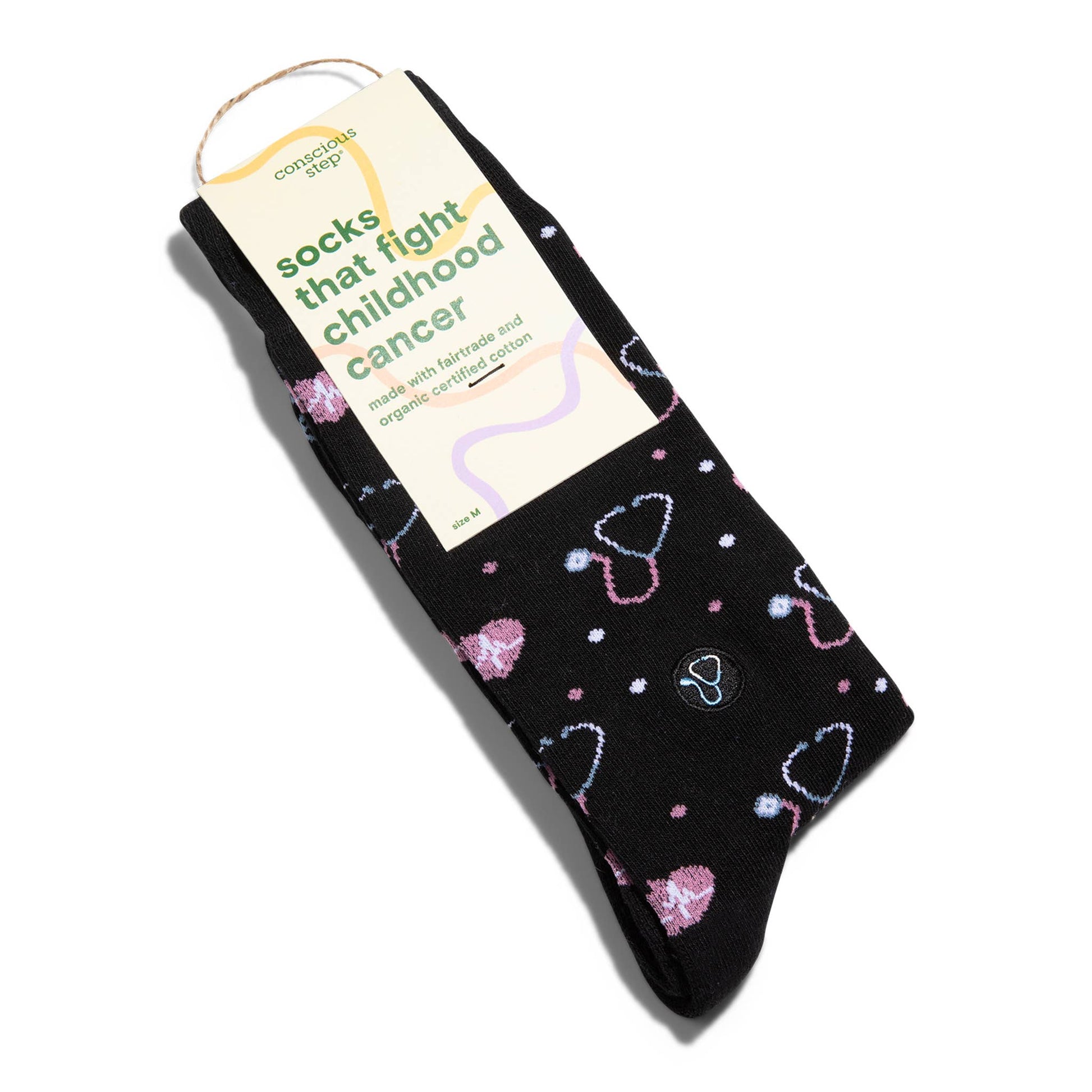 Socks that Fight Childhood Cancer (Black Stethoscopes): Small