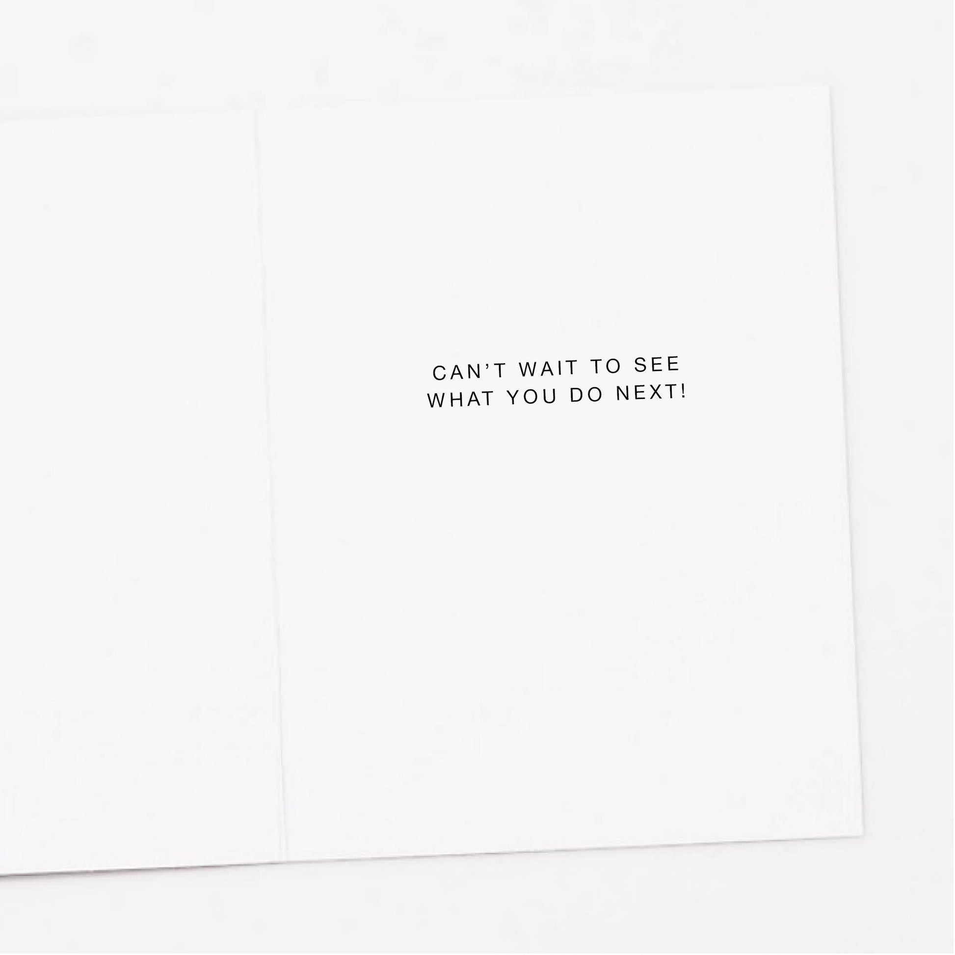Inside greeting: "CAN'T WAIT TO SEE WHAT YOU DO NEXT!"