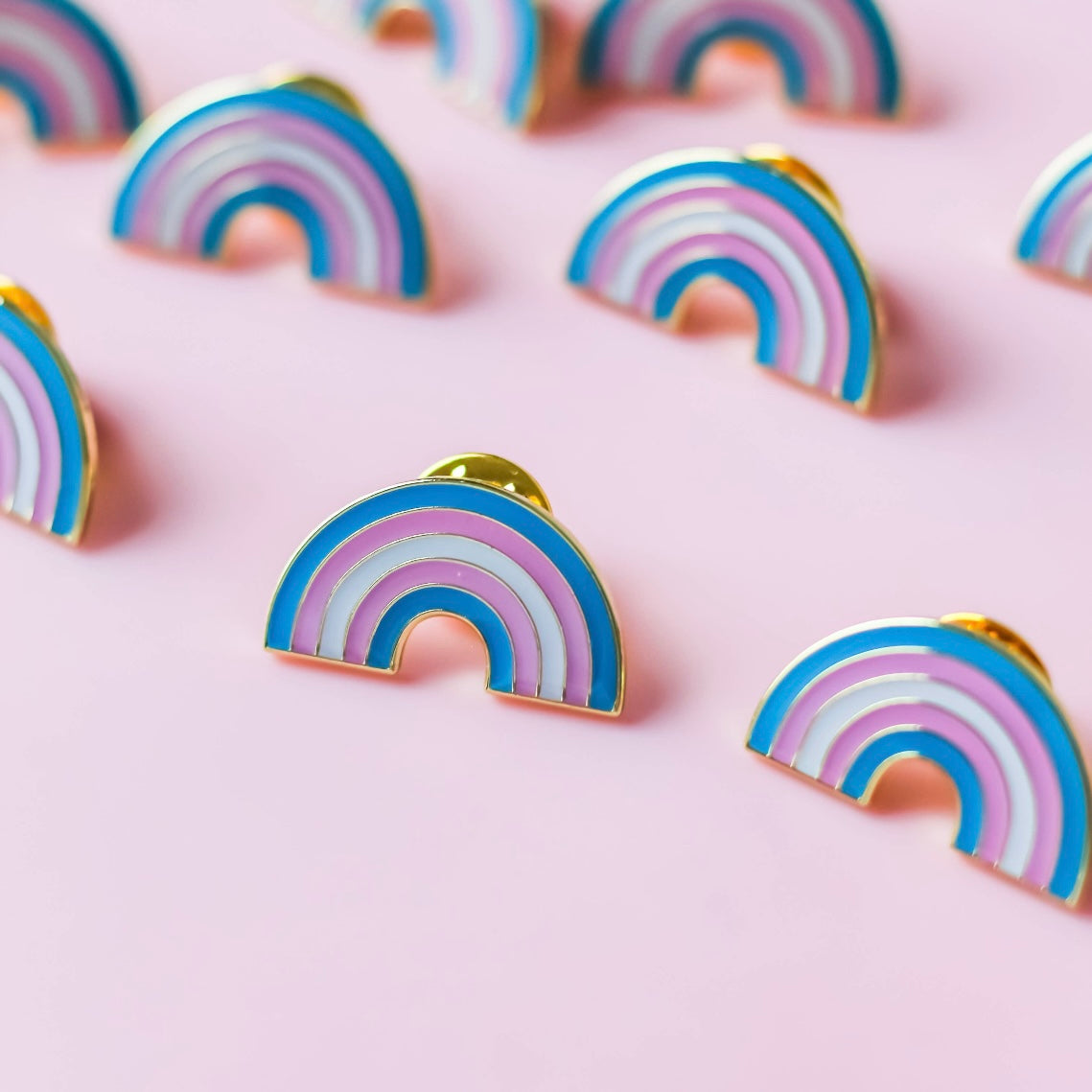 Showing off Transgender PRIDE with this cute Rainbow pin! Perfect to add to jackets, clothing, rom lanyards! The pin is 1.5cm tall x 2.5cm long