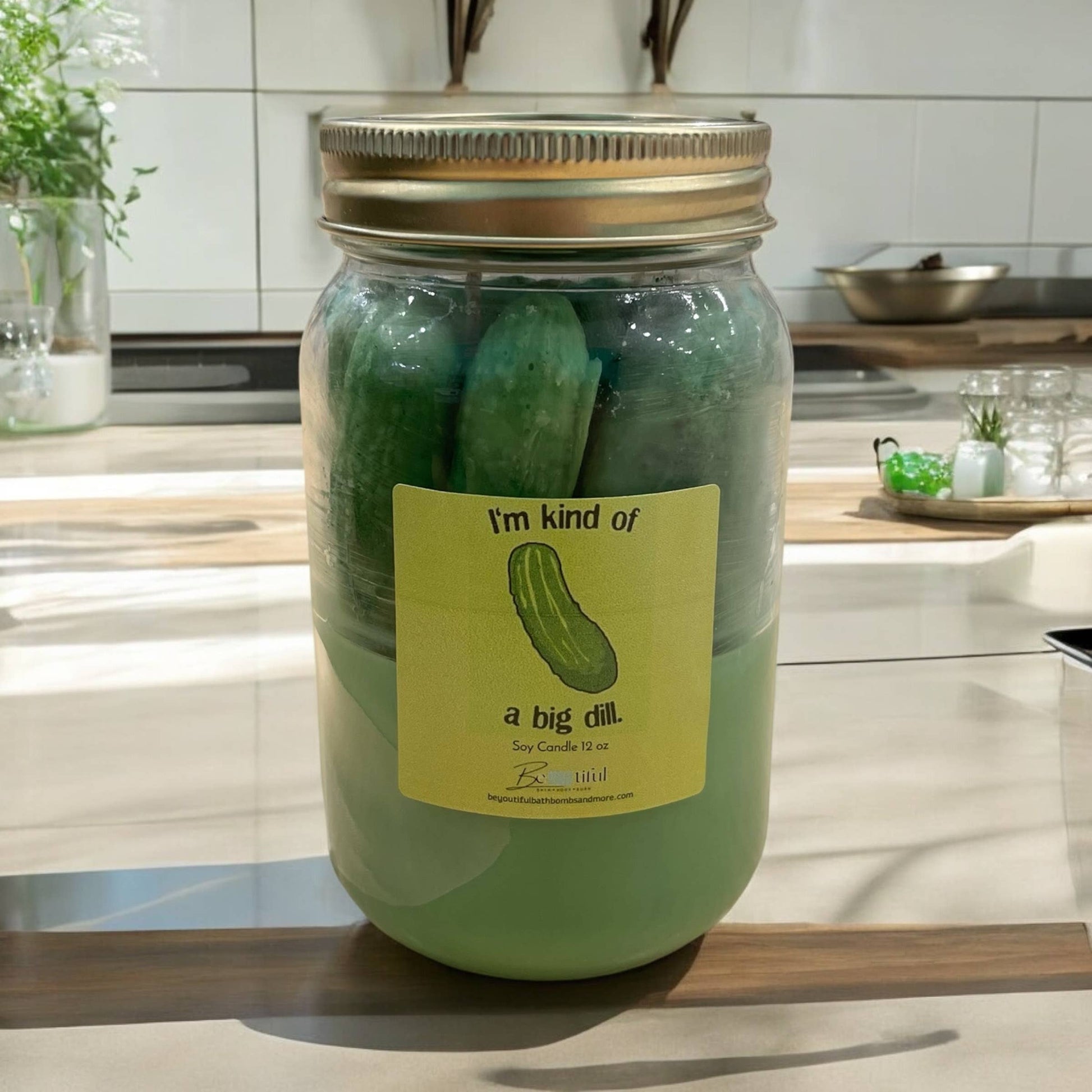 For all you pickle lovers our there, this candle is for you! Yes it smells like Dill Pickles. This is a 2 wick candle with 12 loose wax pickles placed in to appear like a pickle jar.